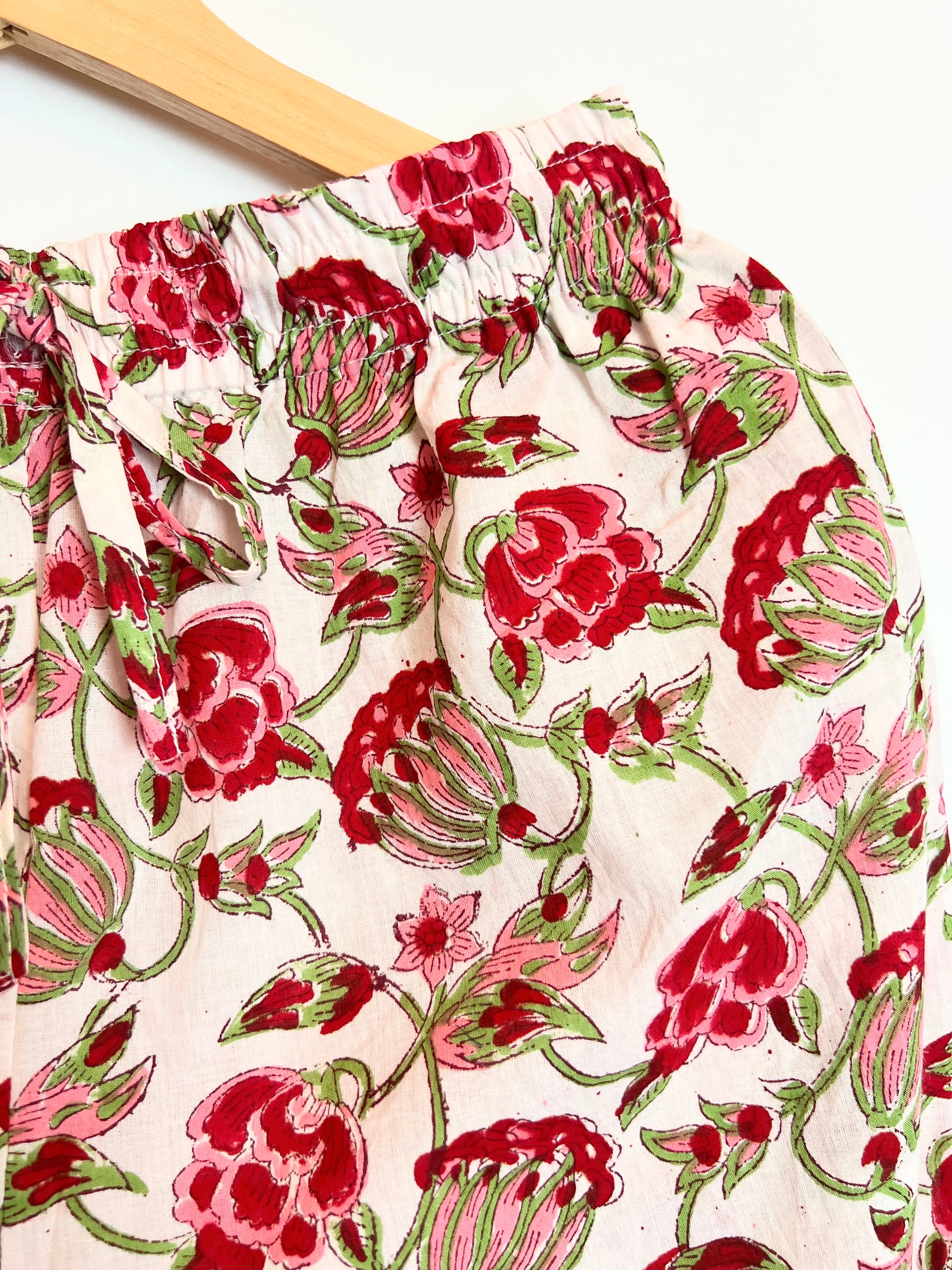 - Details: Button front shirt, drawstring elasticised waist, side pockets, contrast piping