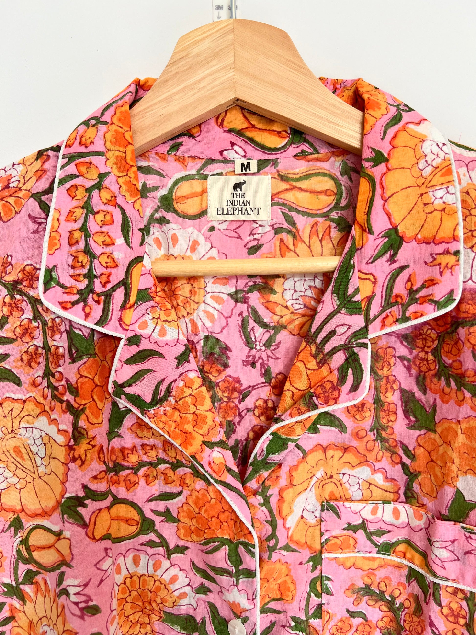- Details: Button front shirt, drawstring elasticised waist, side pockets, contrast piping