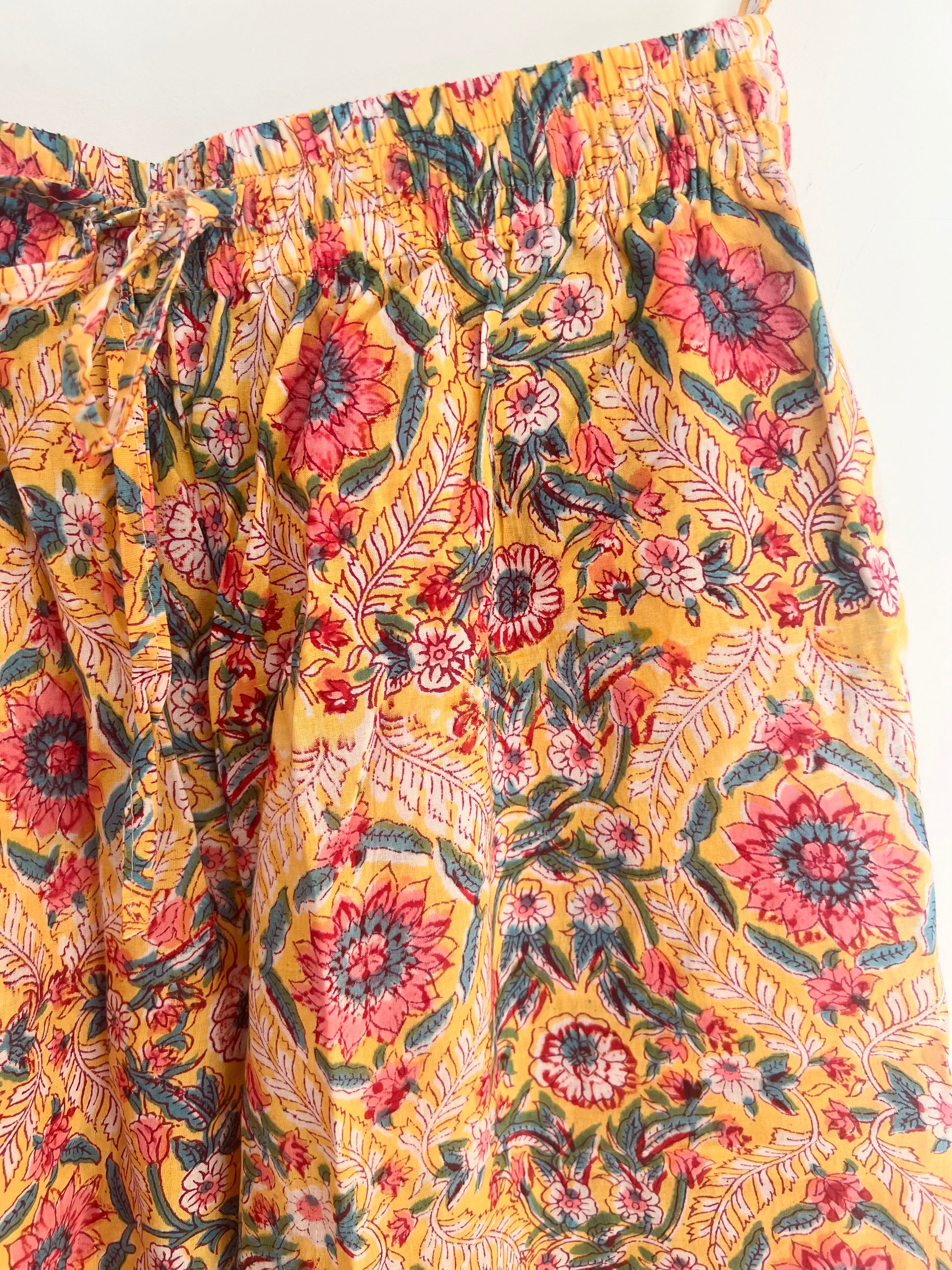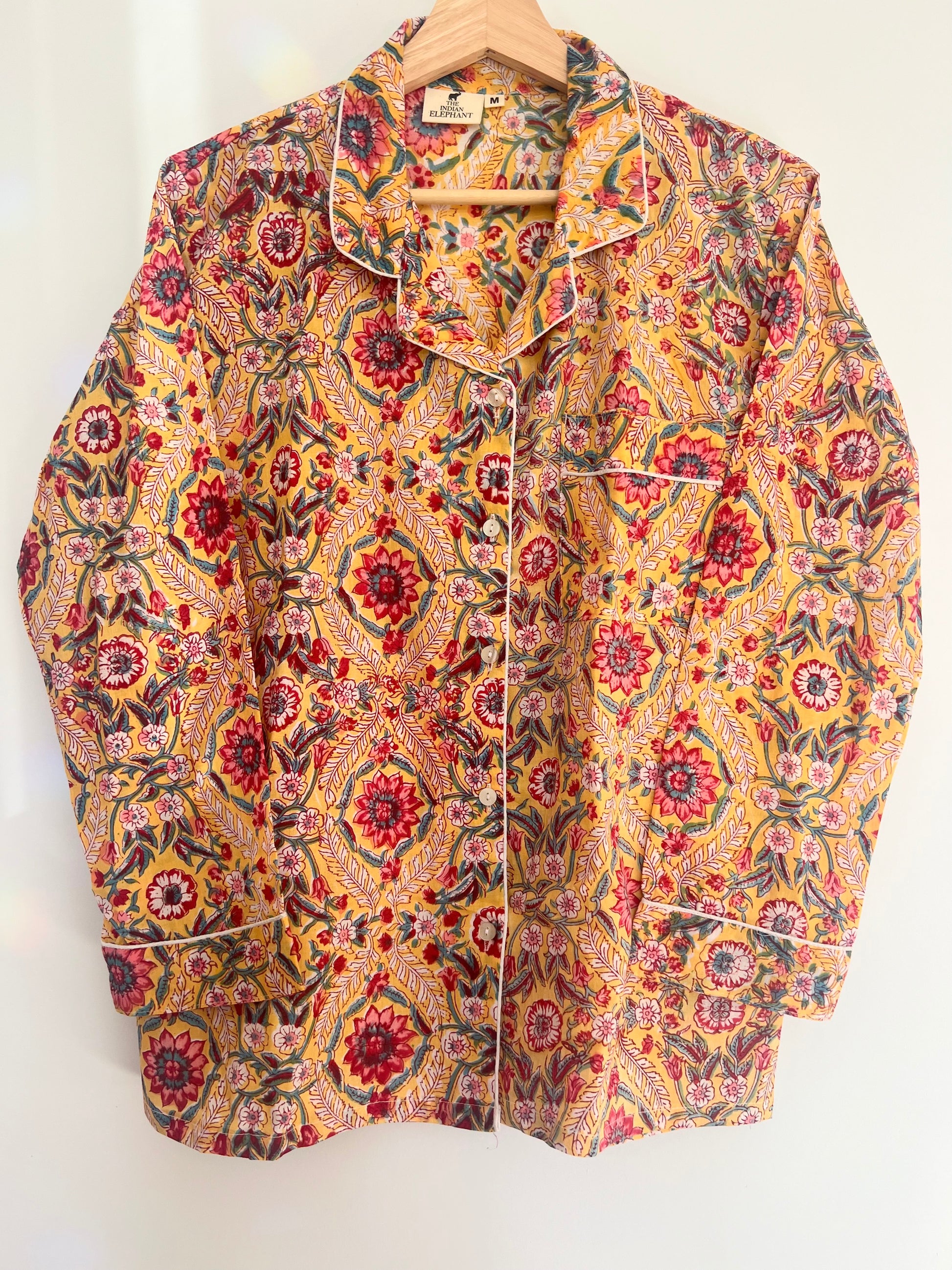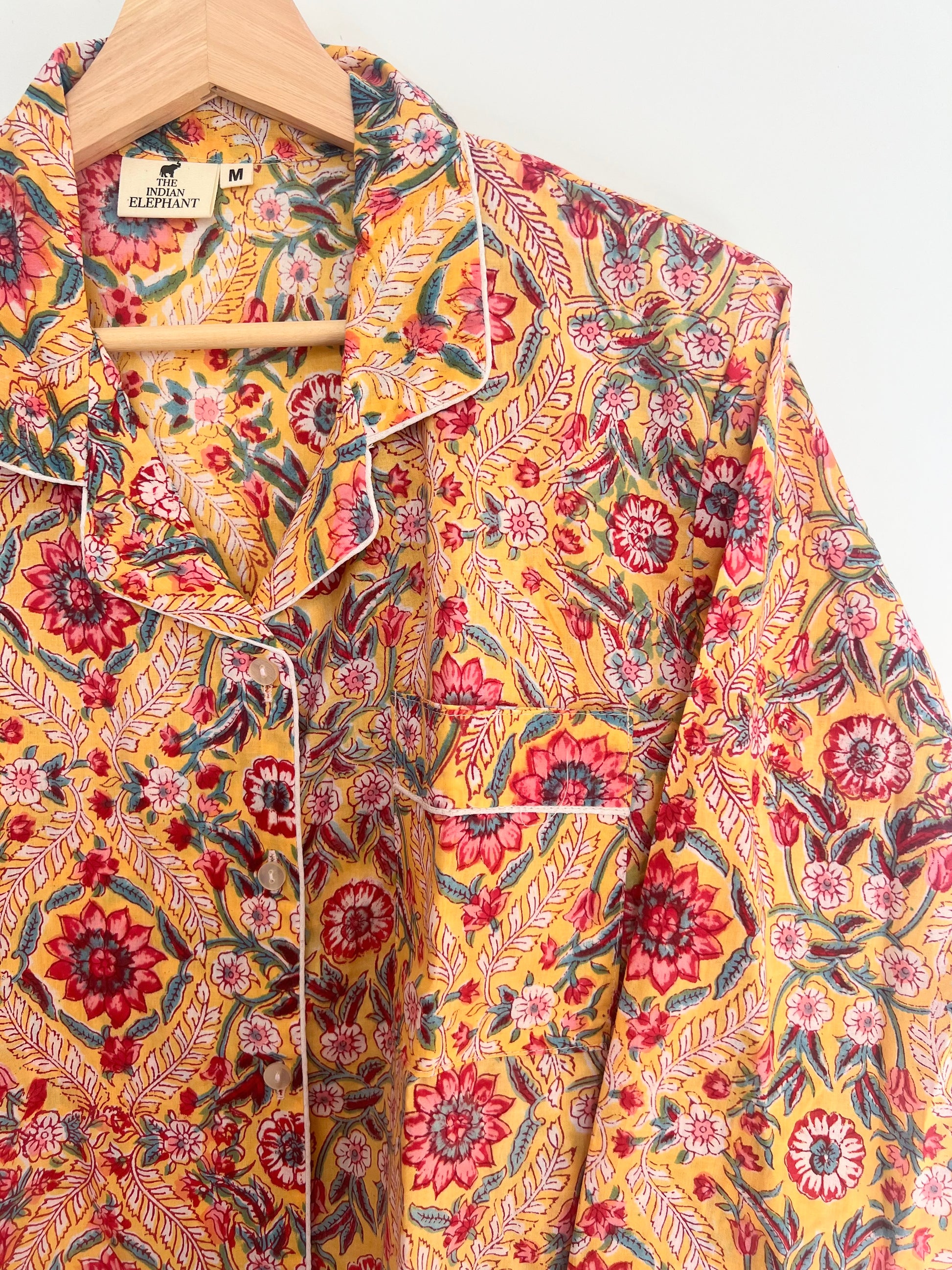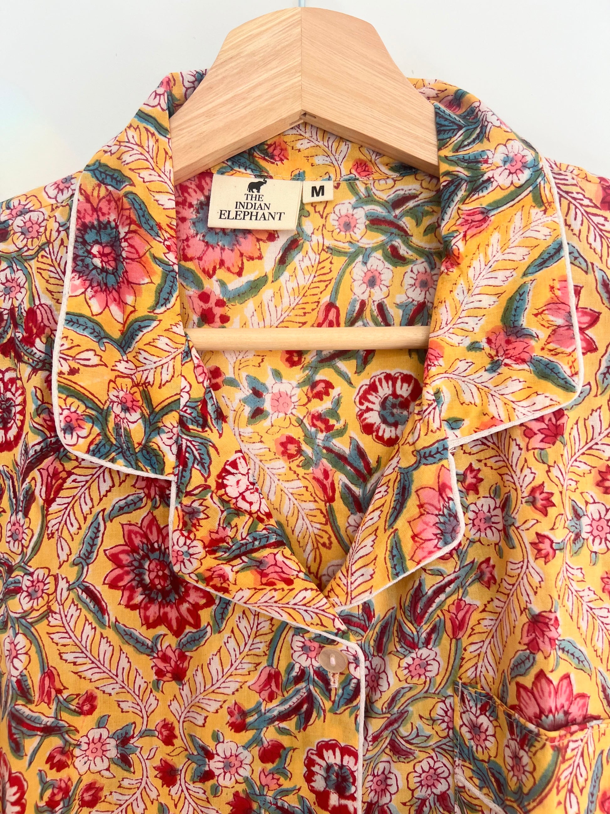 - Details: Button front shirt, drawstring elasticised waist, side pockets, contrast piping
