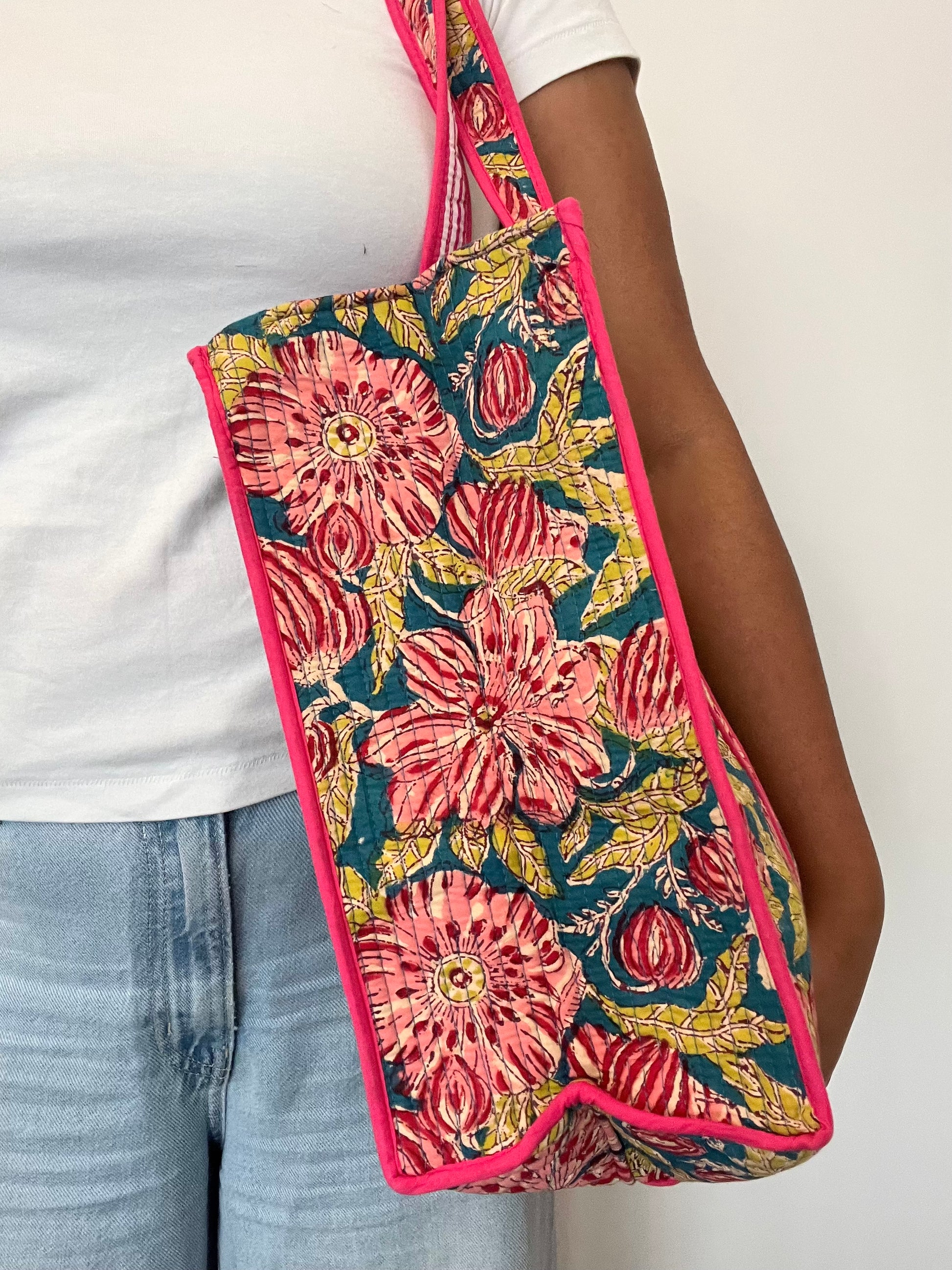 Heritage and Craftsmanship: Expertly crafted in India by skilled artisans, this tote bag is made using the traditional blockprint technique from Rajasthan. By choosing this handmade piece, you contribute to preserving traditional craftsmanship and supporting artisan communities.