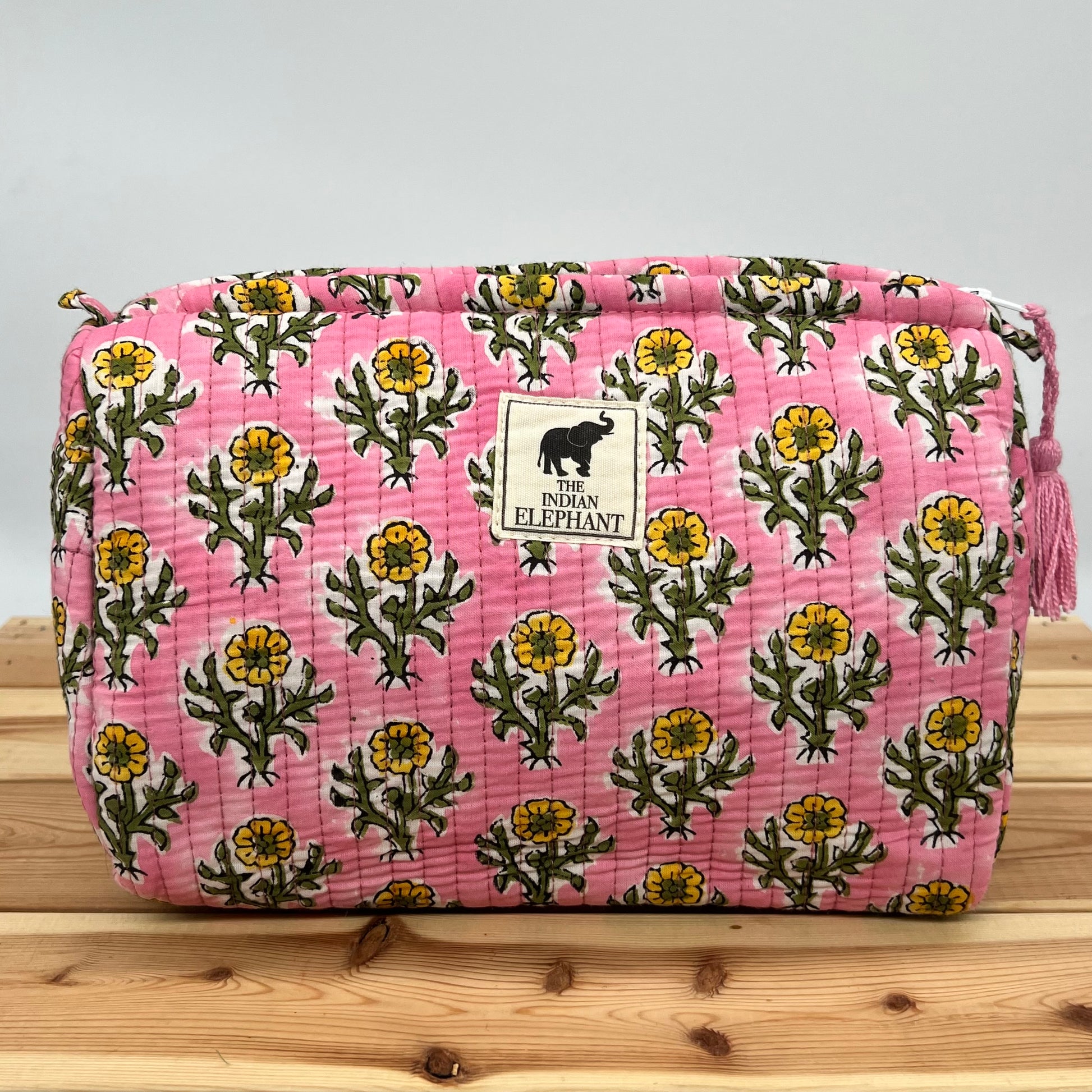 Stay organised and stylish with our Quilted Wash Bag. Perfect for everyday use and travel, this bag is crafted from padded cotton and features a waterproof interior to keep your essentials safe and dry.
