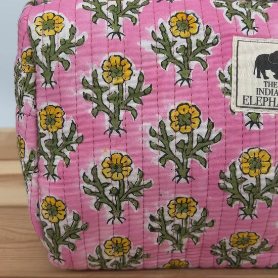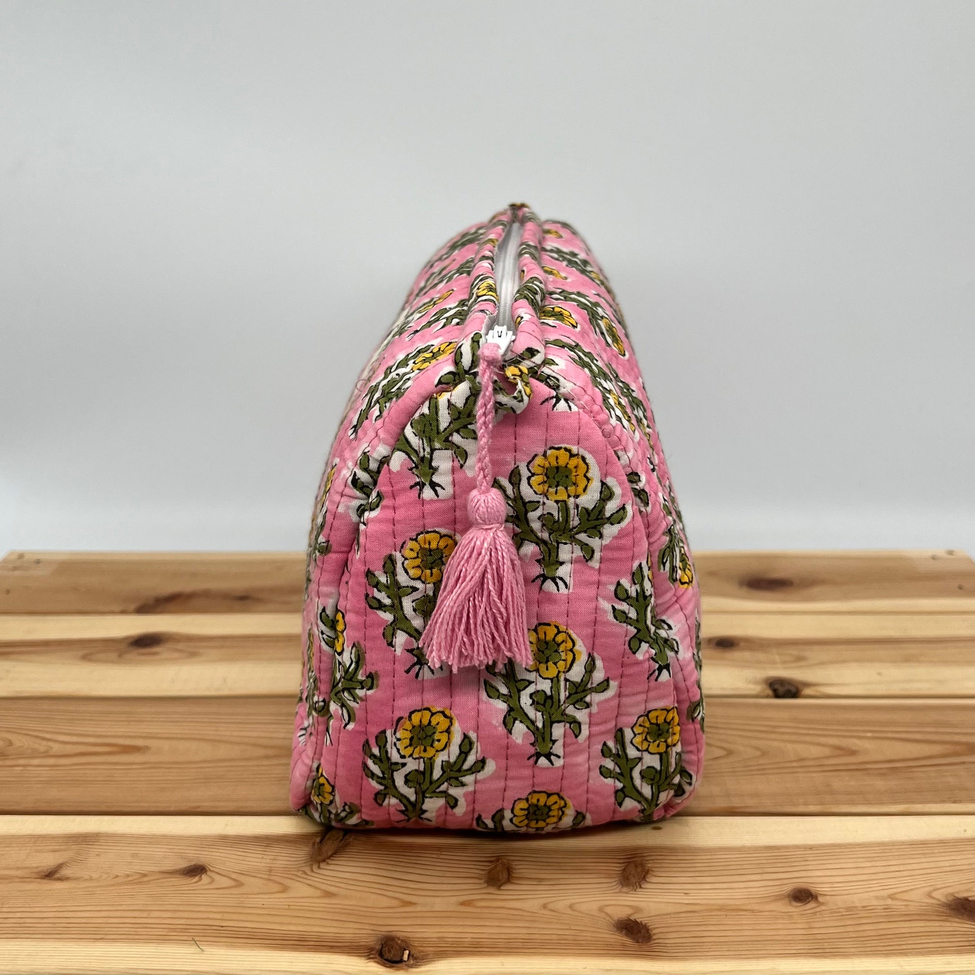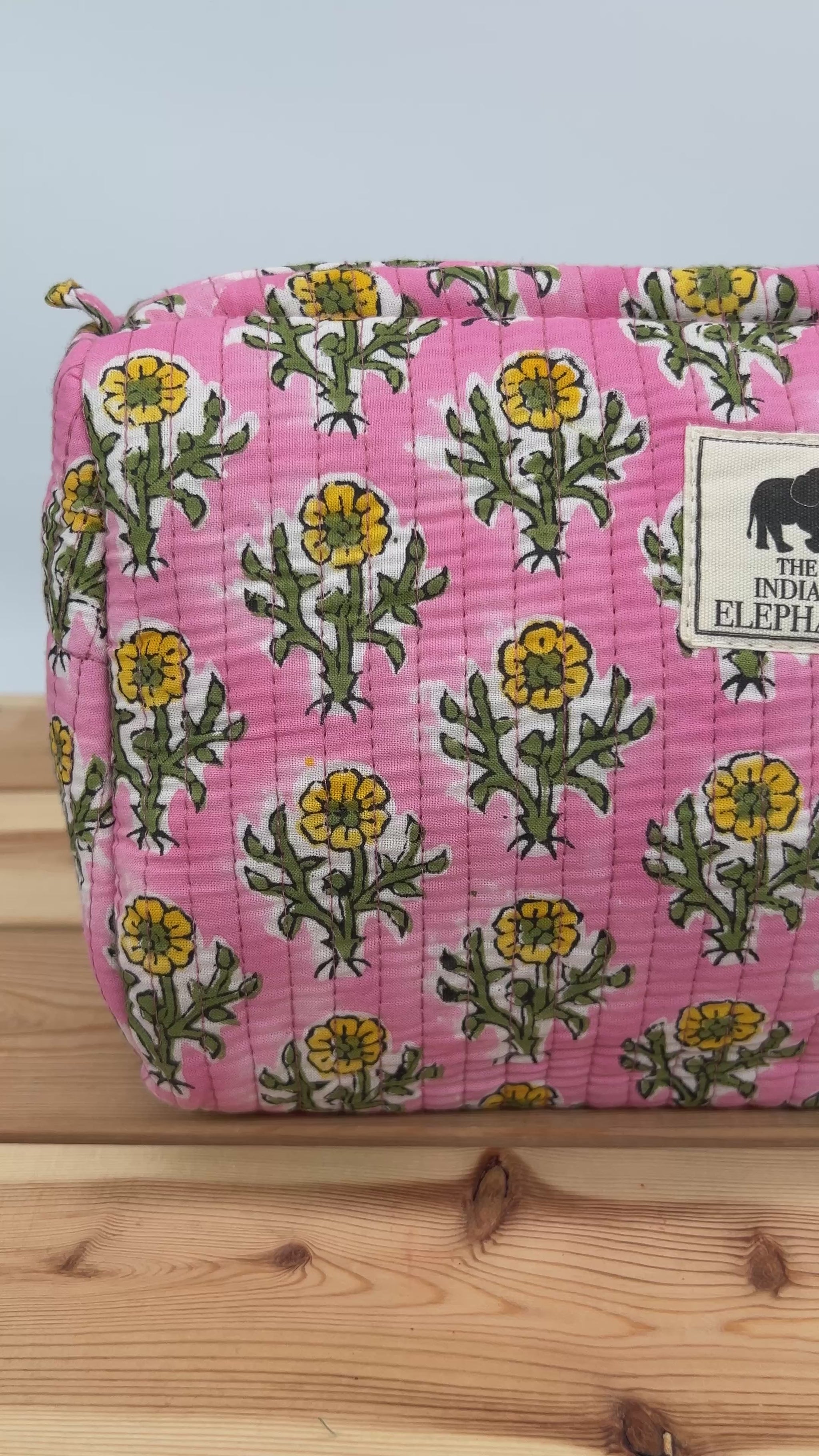 Expertly crafted in India by skilled artisans, this wash bag/makeup bag is made using the traditional blockprint technique from Rajasthan. By choosing this handmade piece, you contribute to preserving traditional craftsmanship and supporting artisan communities.