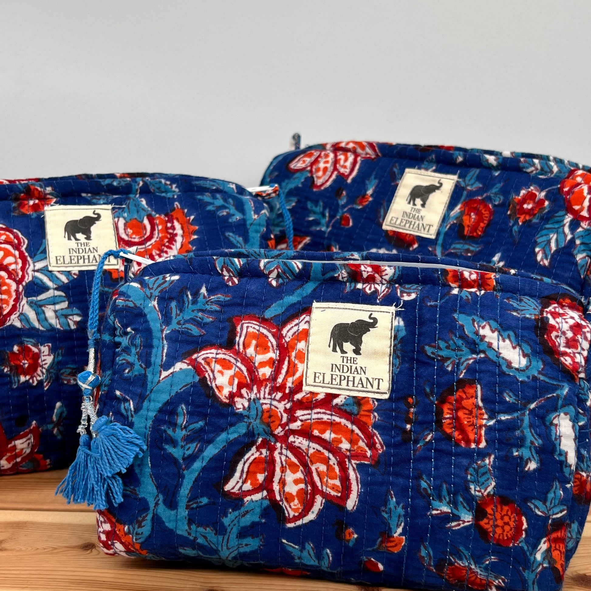 Expertly crafted in India by skilled artisans, this wash bag/makeup bag is made using the traditional block-print technique from Rajasthan. By choosing this handmade piece, you contribute to preserving traditional craftsmanship and supporting artisan communities.