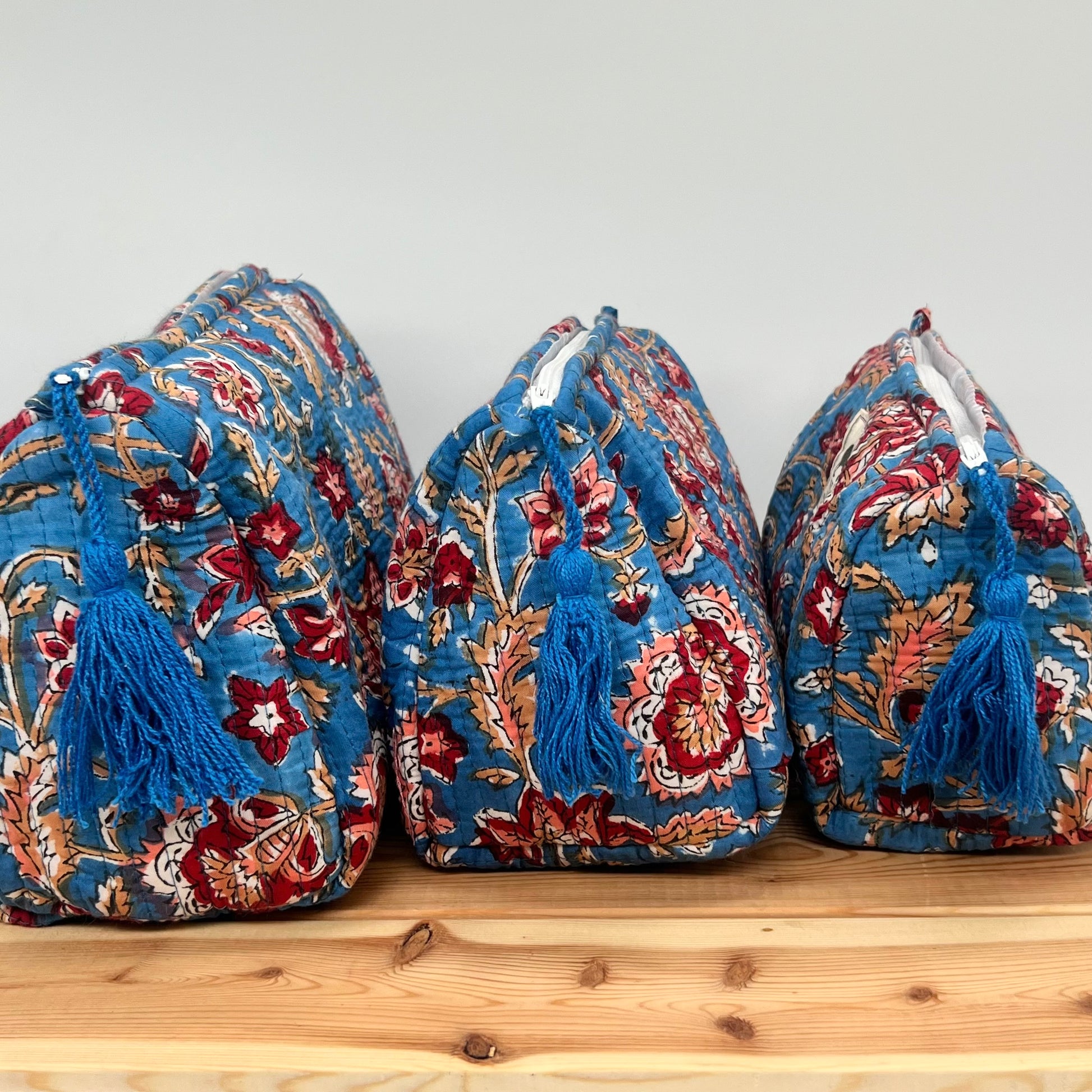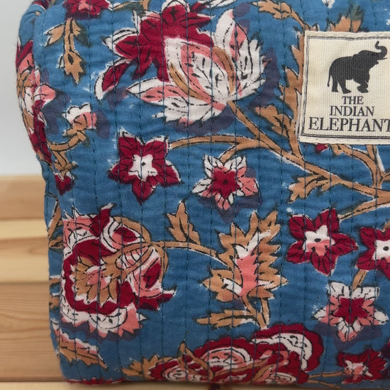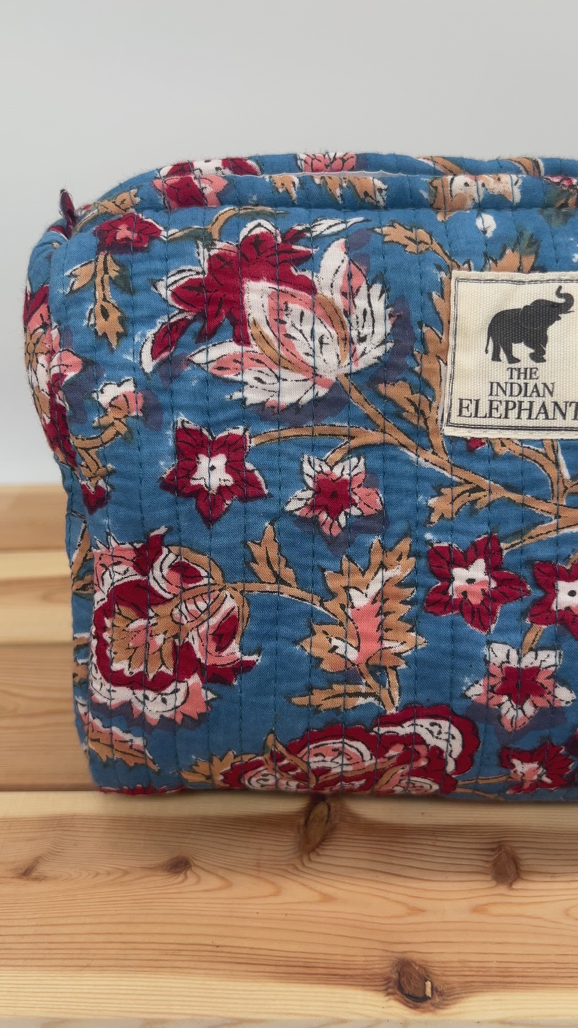 Expertly crafted in India by skilled artisans, this wash bag/makeup bag is made using the traditional block-print technique from Rajasthan. By choosing this handmade piece, you contribute to preserving traditional craftsmanship and supporting artisan communities.