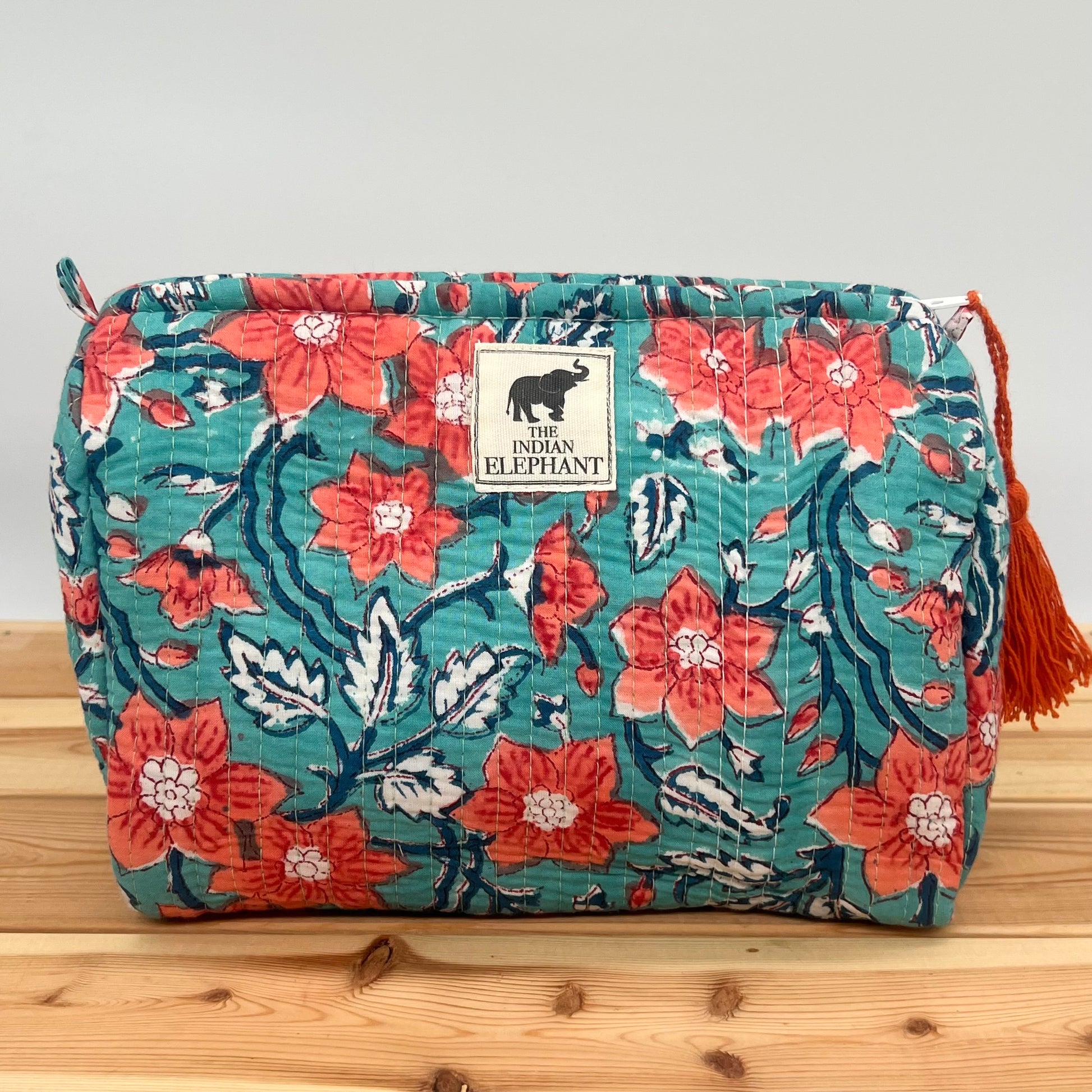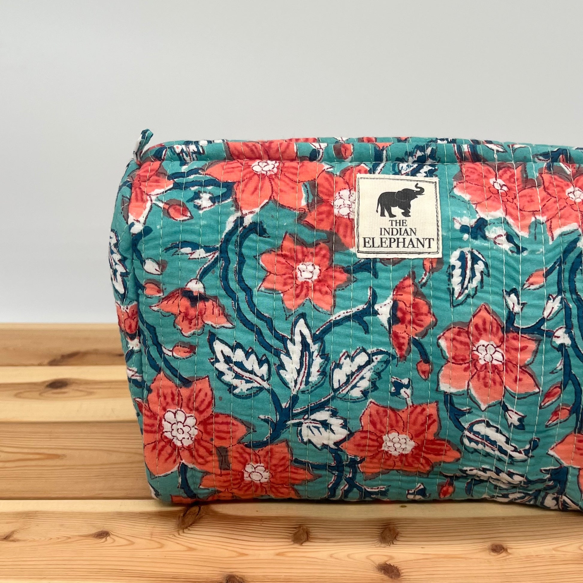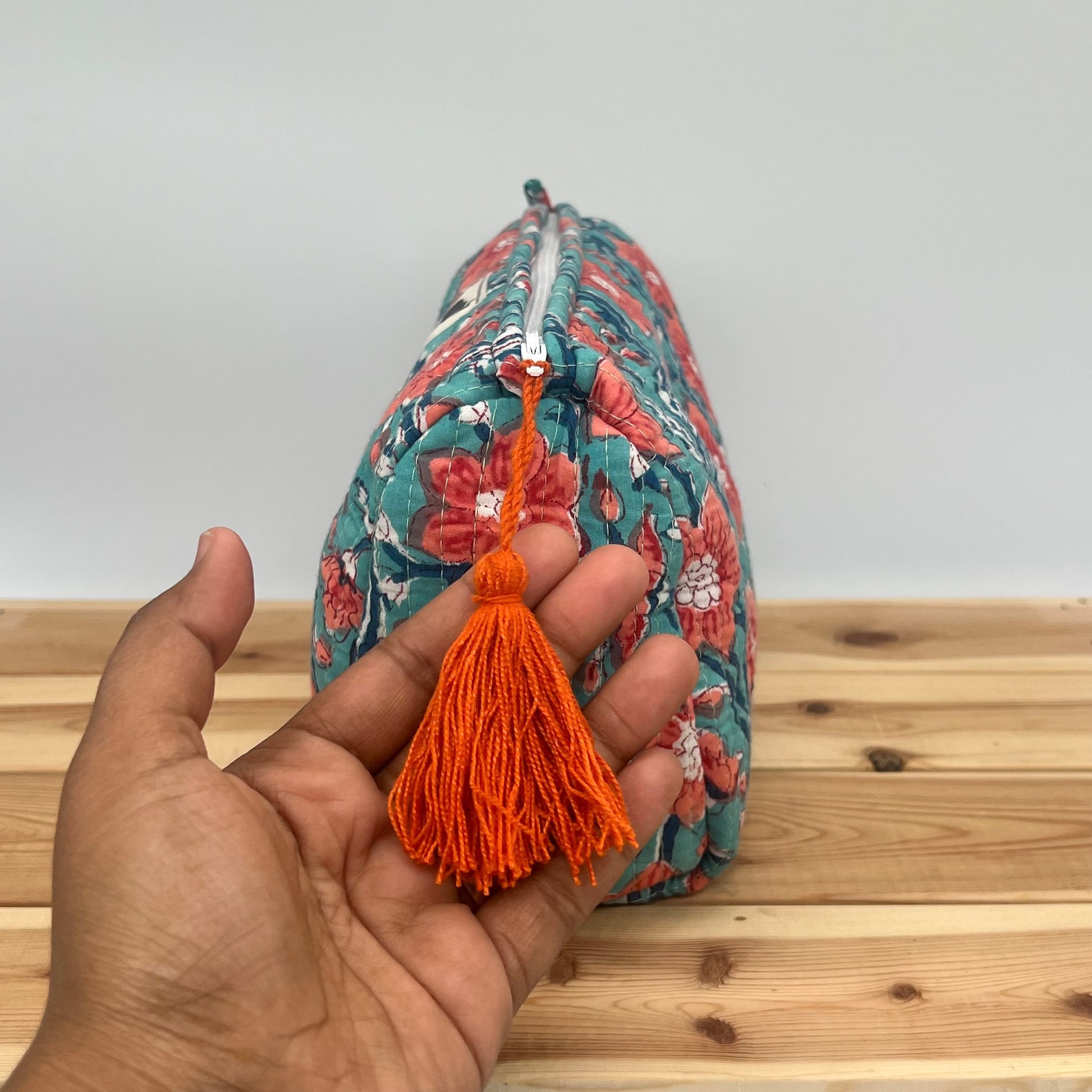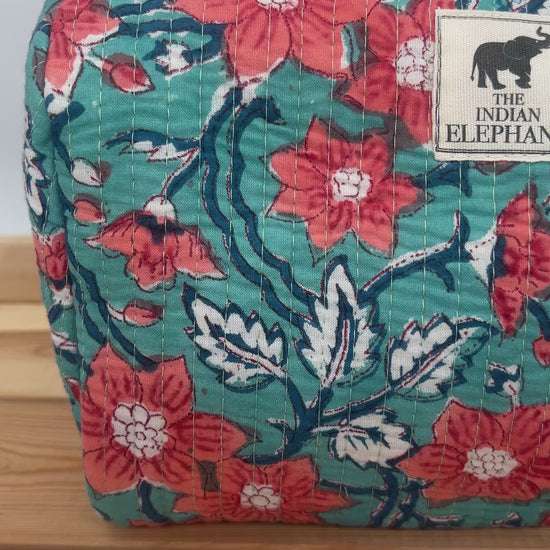 Expertly crafted in India by skilled artisans, this wash bag/makeup bag is made using the traditional block-print technique from Rajasthan. By choosing this handmade piece, you contribute to preserving traditional craftsmanship and supporting artisan communities.