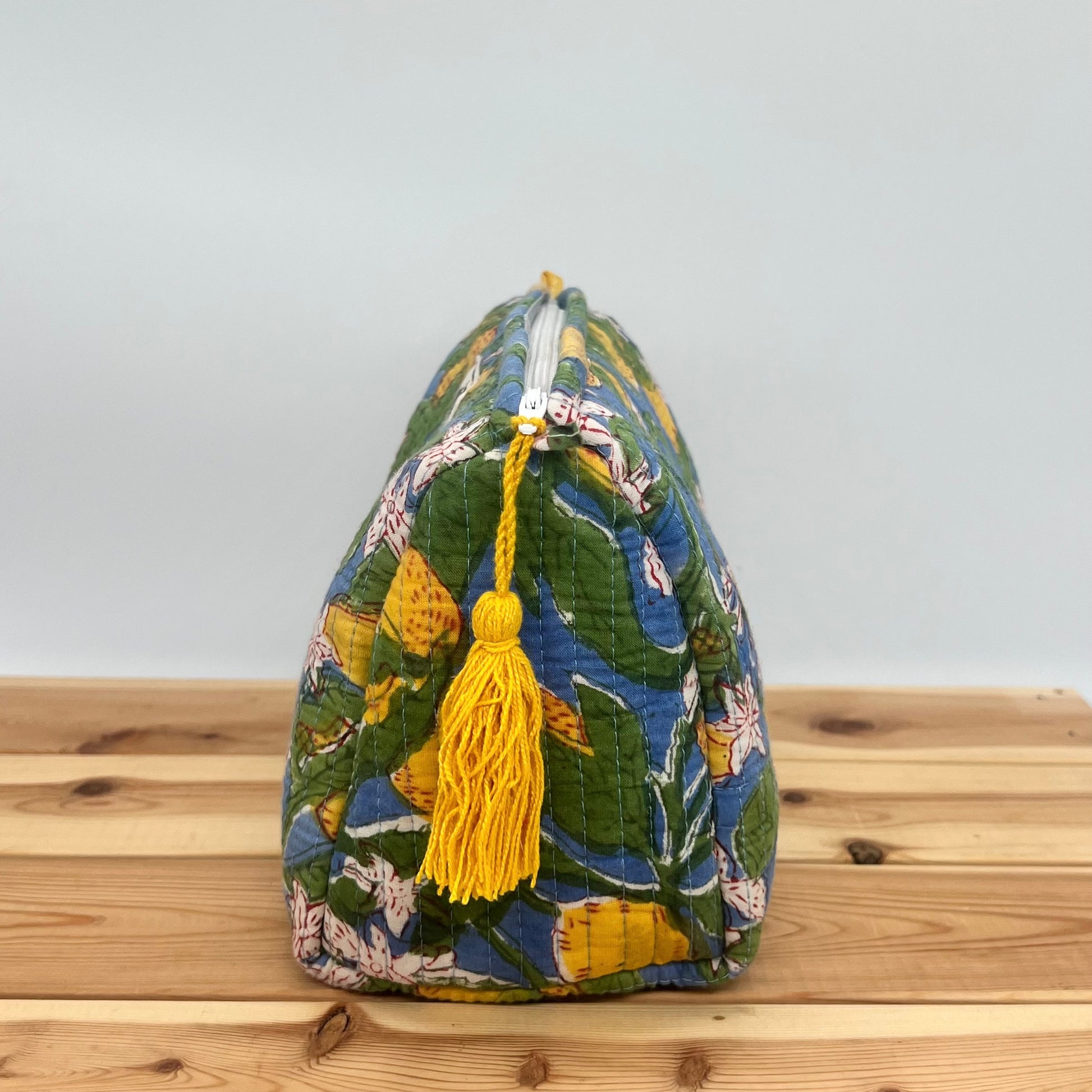 Expertly crafted in India by skilled artisans, this wash bag/makeup bag is made using the traditional block-print technique from Rajasthan. By choosing this handmade piece, you contribute to preserving traditional craftsmanship and supporting artisan communities.