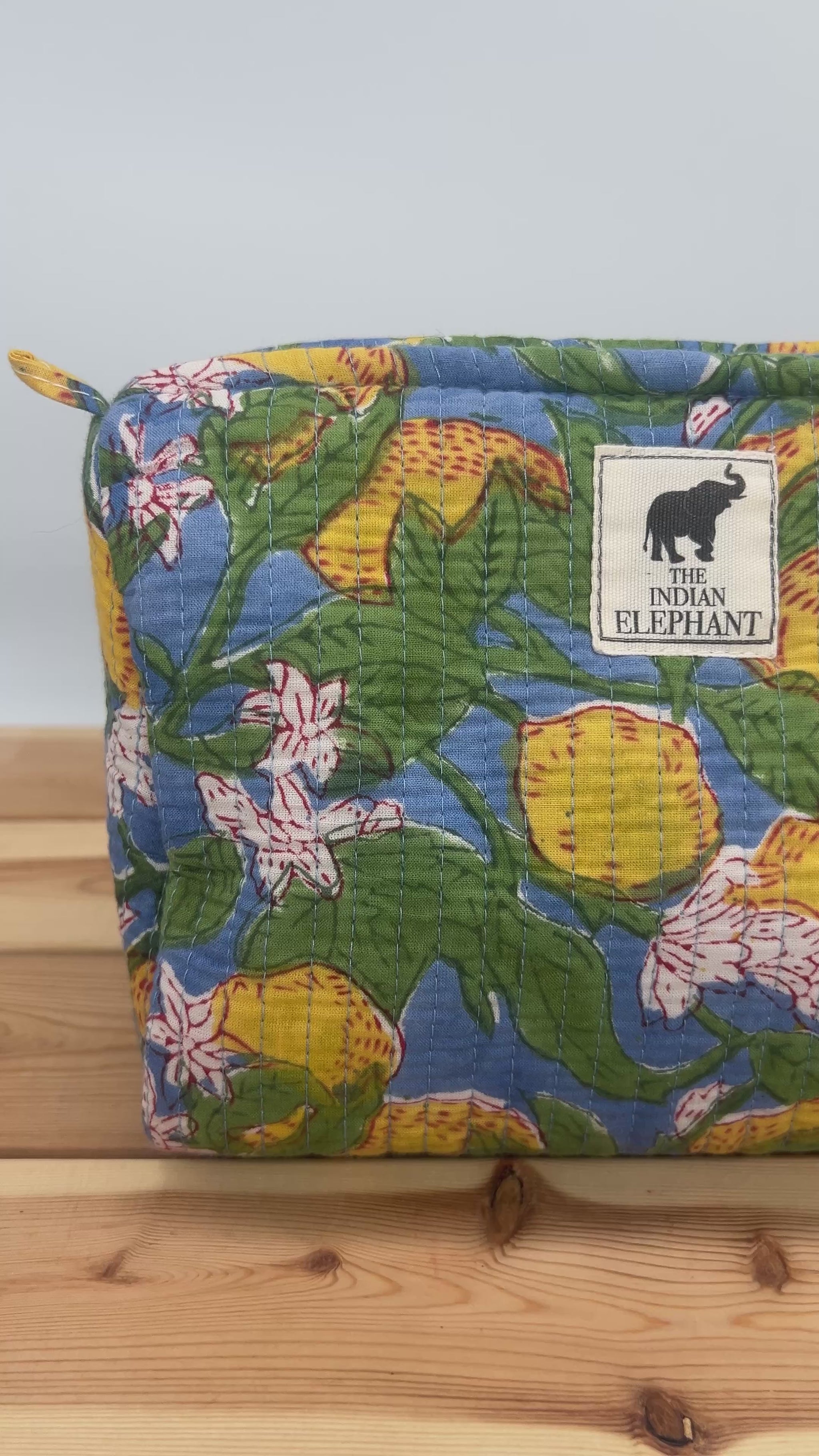 Stay organised and stylish with our Quilted Wash Bag. Perfect for everyday use and travel, this bag is crafted from padded cotton and features a waterproof interior to keep your essentials safe and dry.